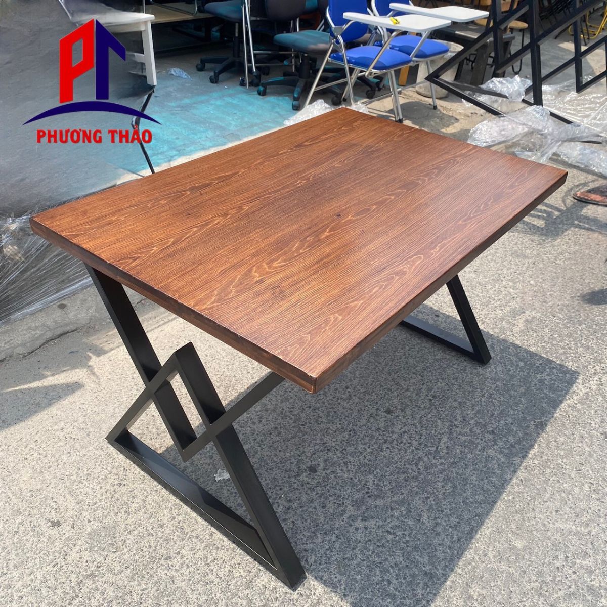 Bàn chân V khung sắt hộp 25x50 mặt gỗ cao su phủ vân sồi , mặt chày viền giã dầy 3p4 chắc chắn