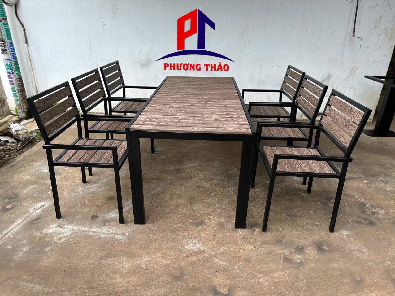 Bộ bàn 6 ghế chất liệu khung sắt được ốp gỗ thông ,hoặc Sồi theo yêu cầu của quý khách