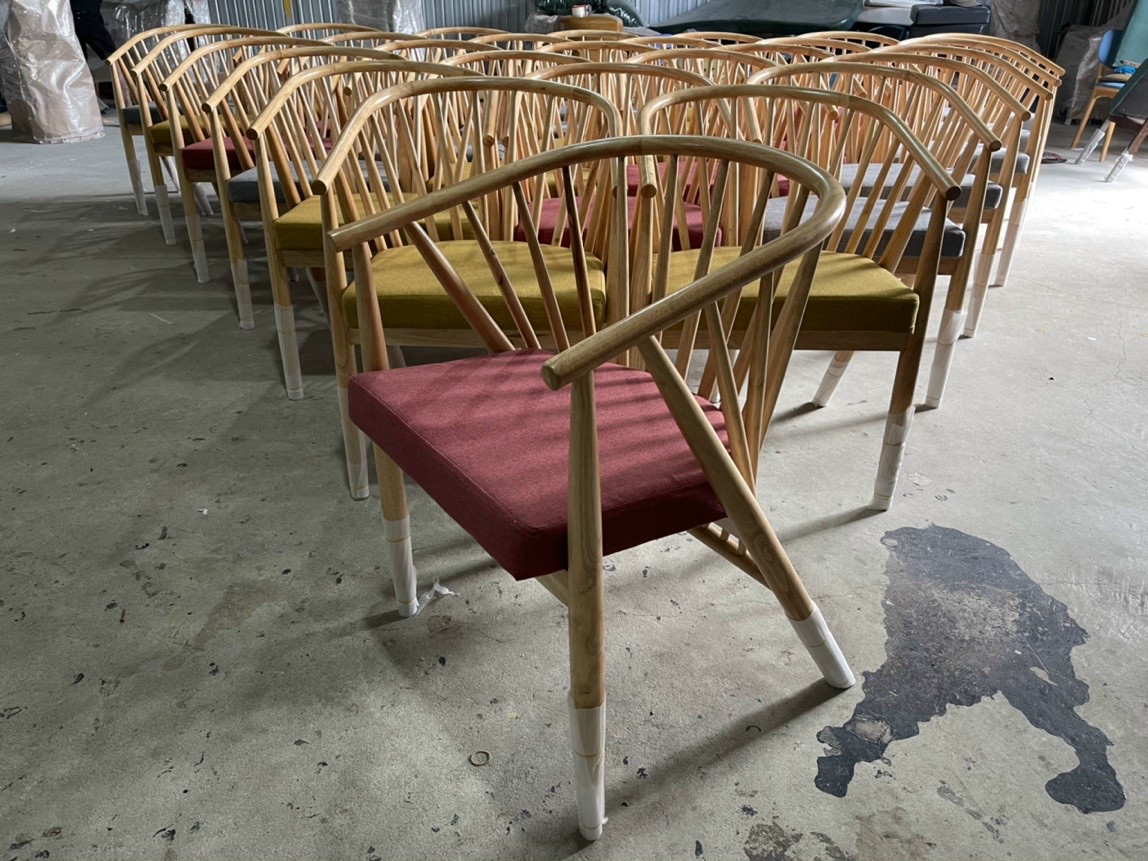 Phần lưng dựa được thiết kế như hình nan quạt, uốn cong ôm trọn người ngồi là điểm đặc biệt tạo sự thu hút của mẫu ghế này.