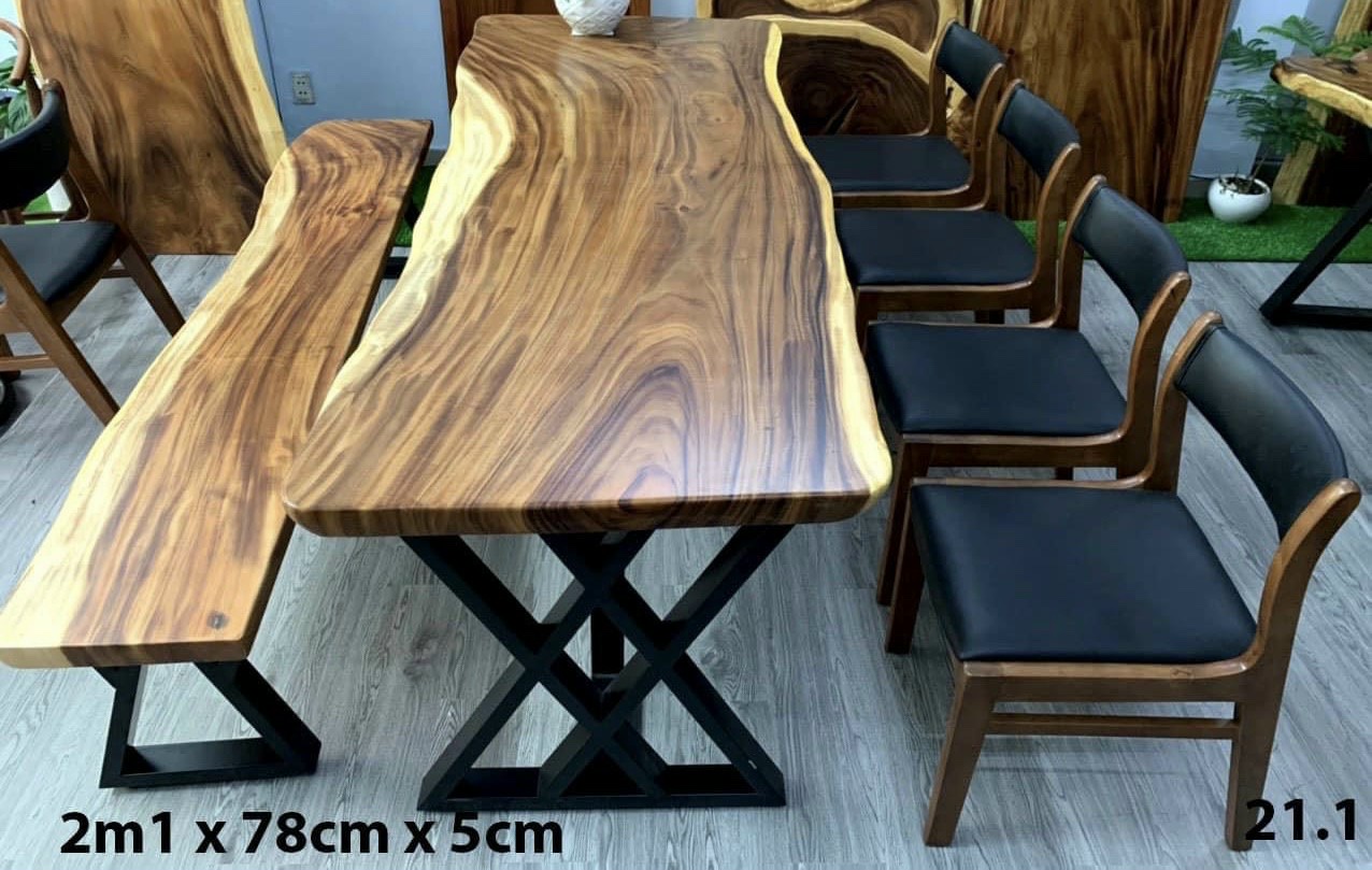 Xu hướng lựa chọn bàn gỗ tự me tây nhiên nguyên tấm đang là phong cách trang trí nội thất rất được ưa dùng trong việc trang trí bàn ghế nội thất nhà hàng, bàn ghế phòng ăn gia đình, căn hộ, văn phòng.