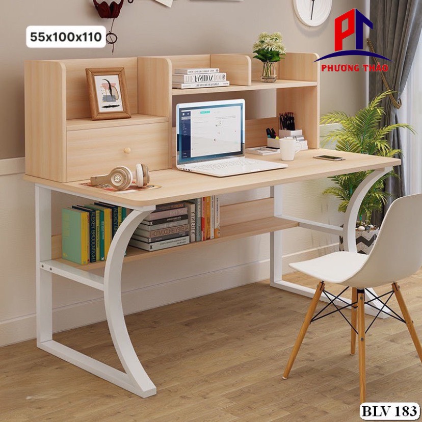 Bàn học sinh kết hợp giá sách 2 tầng lưu trữ đa dạng giúp không gian học tập trở lên gọn gàng, thoải mái.Mang đến thời gian học tập làm việc hiệu quả.