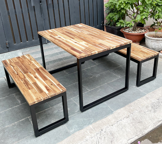 Ghế băng dài 120x40cm gỗ tràm , gỗ thông, gỗ cao su , theo yêu cầu khách đặt chân sắt PT212 là sự kết hợp hài hoà giữa mặt gỗ tràm vân màu đẹp mắt và khung chân sắt chắc chắn. Gỗ tràm ghép dày 25mm được xử lý chống thấm nước, màu vân gỗ tự nhiên độc đáo kết hợp hệ khung chân cơ cấu lắp ráp ngàm chắc chắn, bề mặt phủ lớp sơn tĩnh điện đảm bảo độ bền cao. Ghế băng PT212 với kiểu dáng tối giản toát lên vẻ đẹp mộc mạc, gần gũi được ưa chuộng sử dụng trong không gian nhà ăn, ban công hay các quán ăn, nhà hàng...