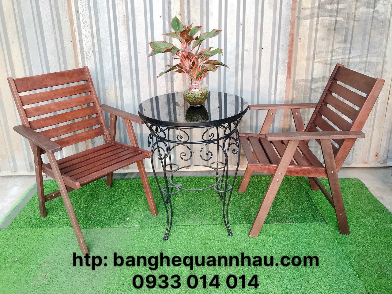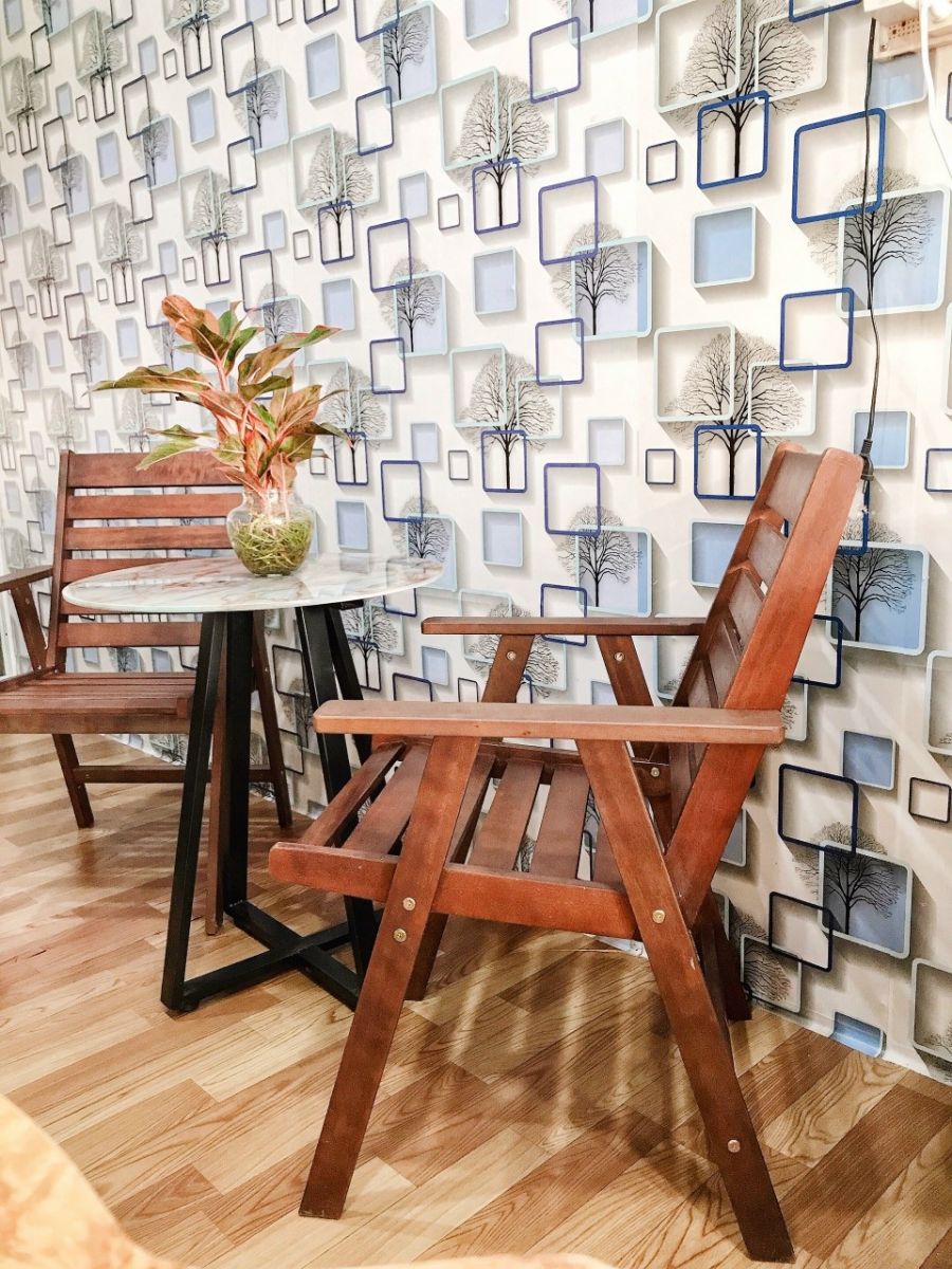 BỘ BÀN 2 GHẾ GỖ CAFE SÂN VƯỜN