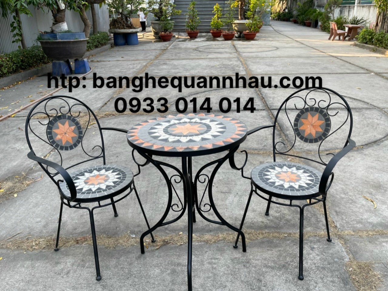 BỘ BÀN 2 GHẾ SẮT MỸ NGHỆ GỐM CAFE SÂN VƯỜN
