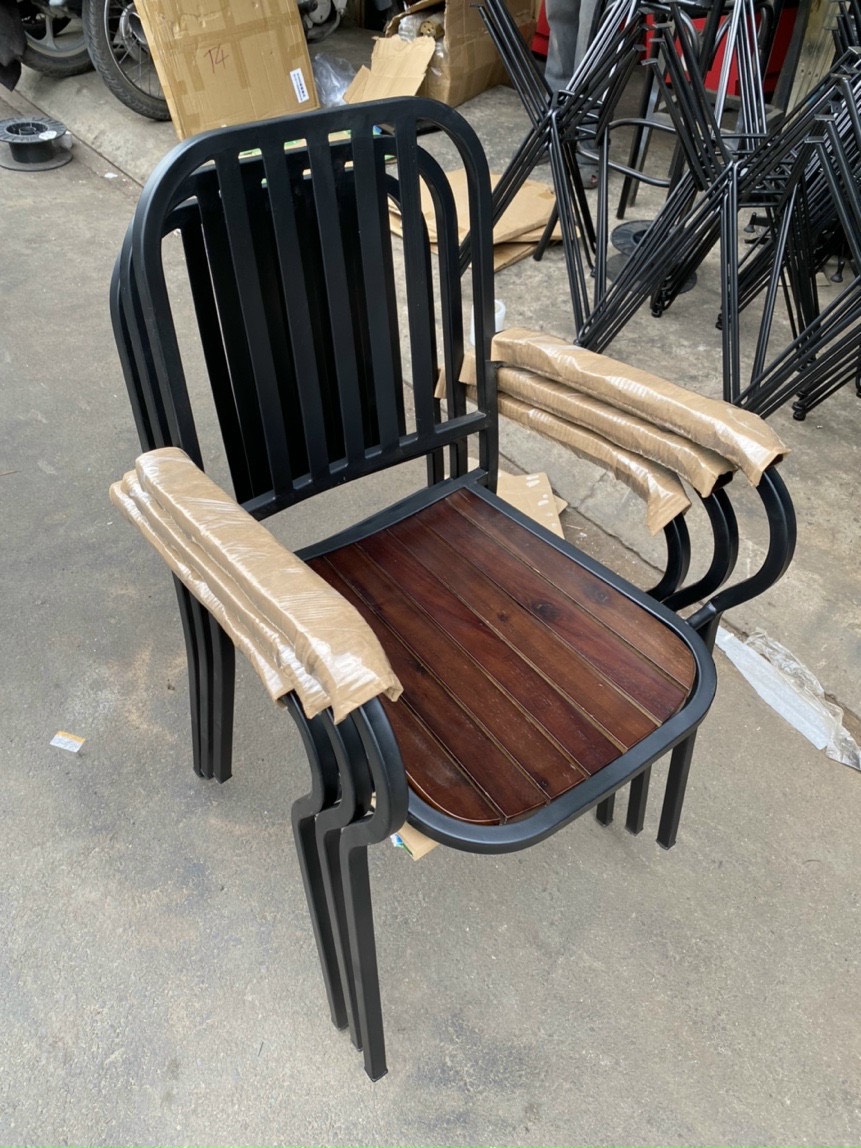 BỘ BÀN CAFE KHUNG SẮT MẶT GỖ NGOÀI TRỜI CÓ TAY