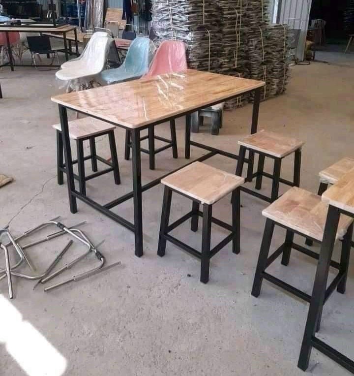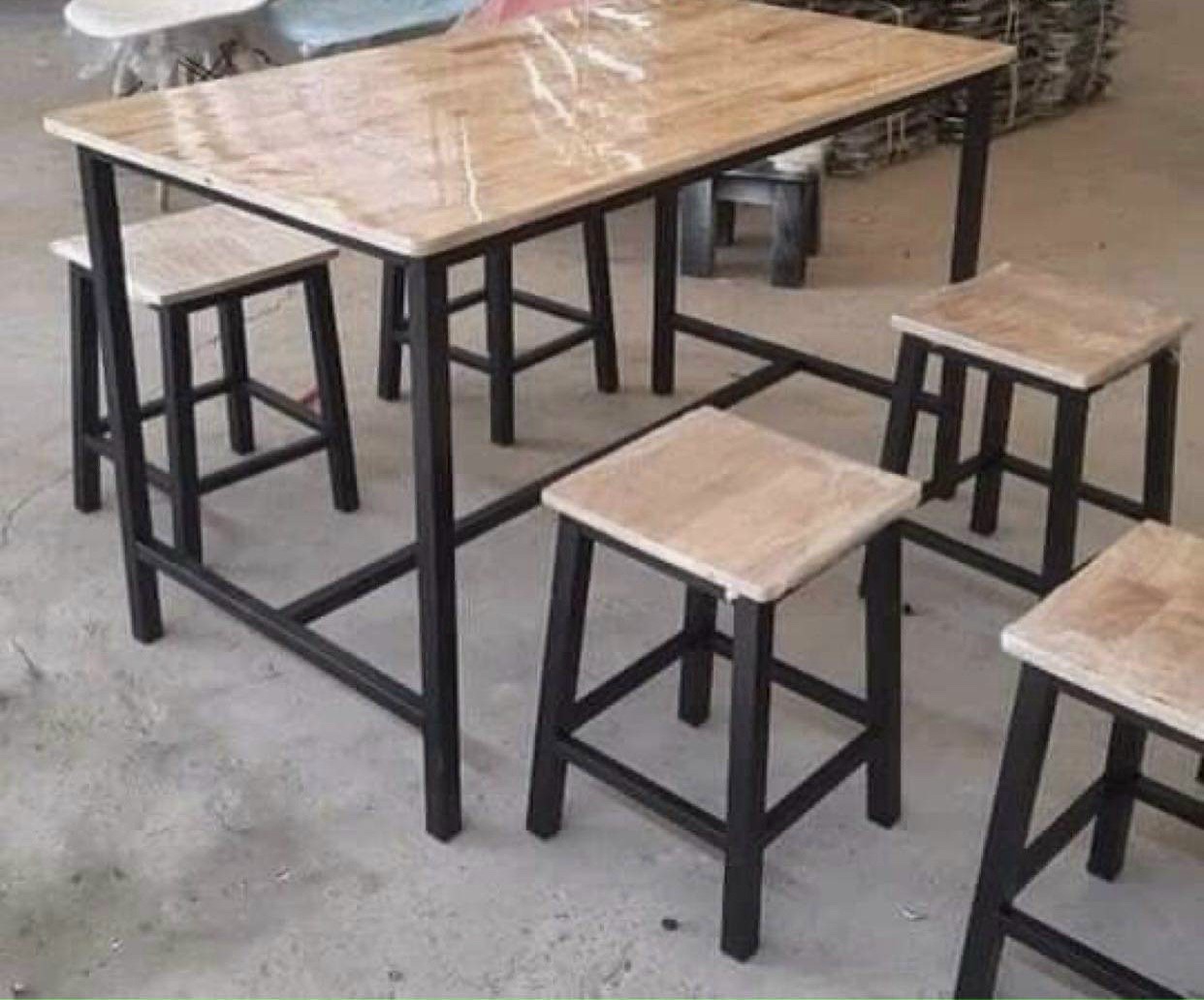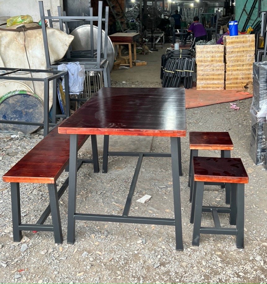 Bộ bàn ghế quán nhậu , nhà hàng chân sắt mặt gỗ cao su