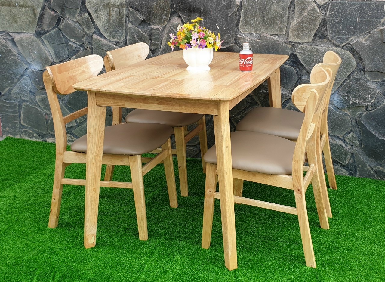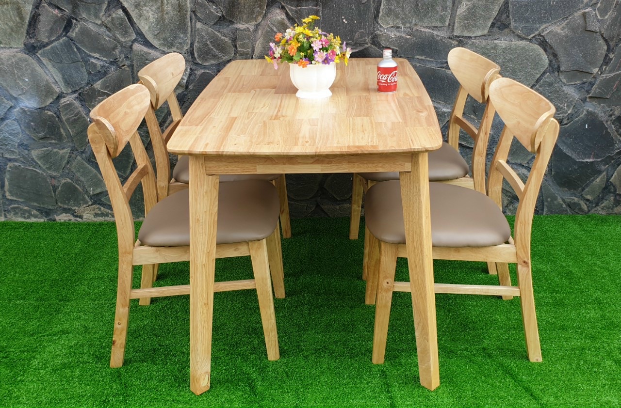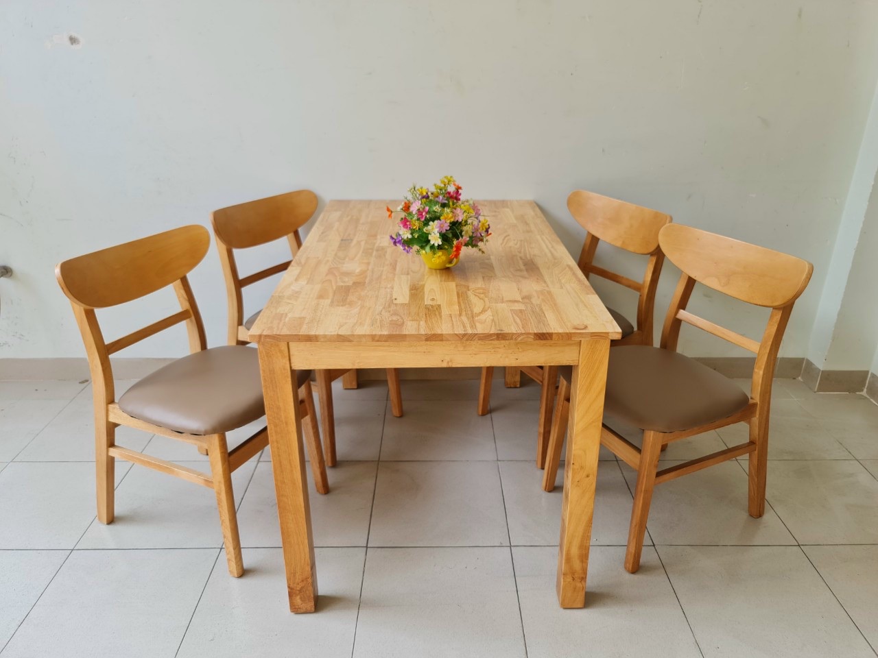 Chất liệu ghế: Gỗ cao su kết hợp nệm bọc Simili