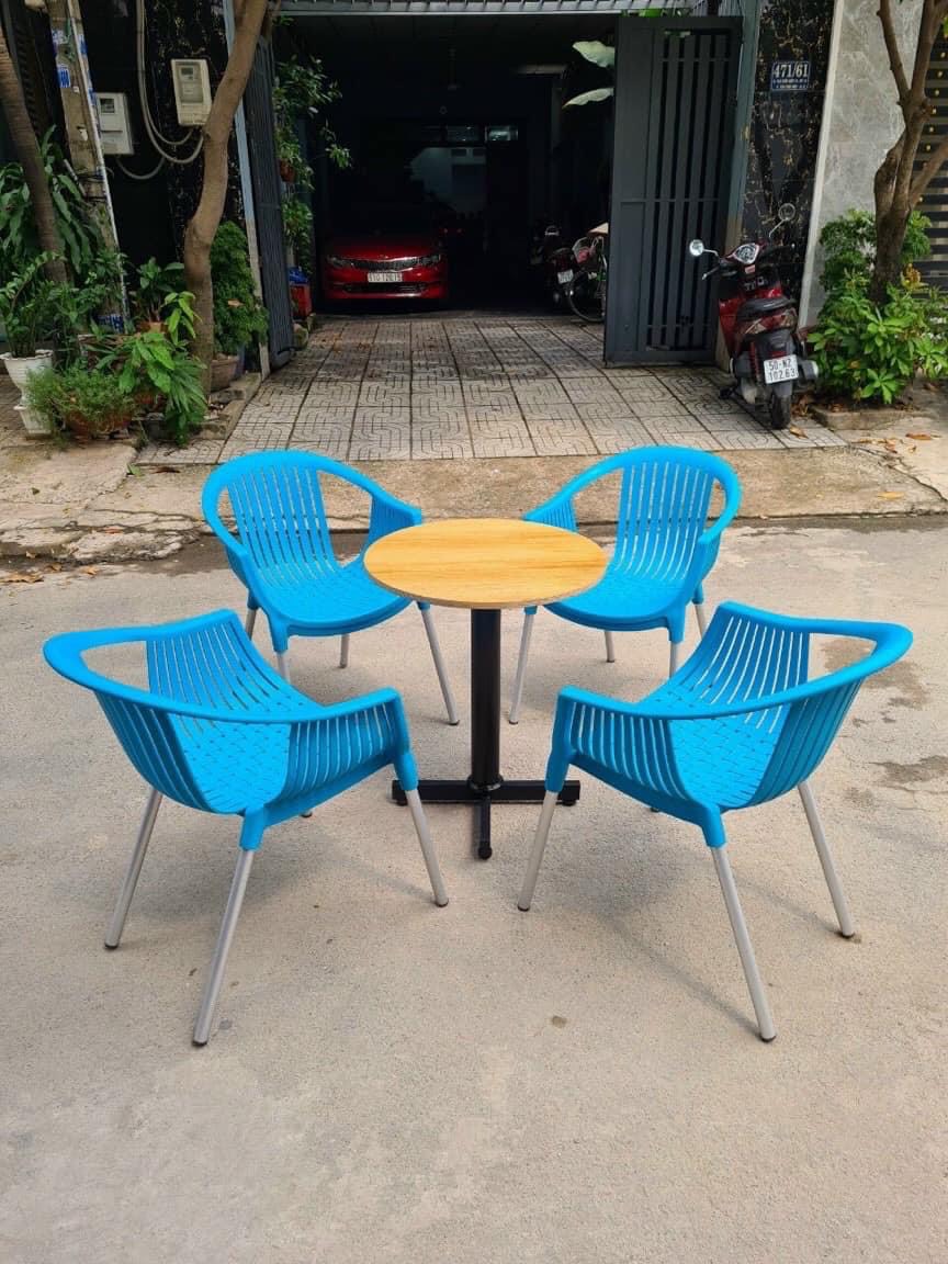 bộ bàn ghế nhựa đúc lỗ chân nhôm