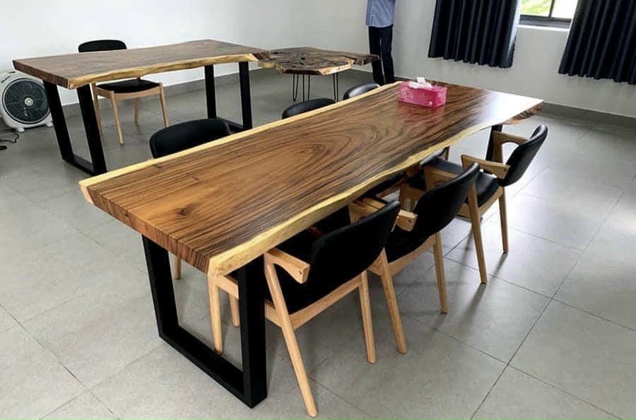 ghế gỗ hitoshima chất liệu cao su bọc simili cao cấp kt ghế 420x 450x 450 Bàn me tây mặt bản to và dầy. độ dầy của bàn 5 phân Kích thước : bàn 80x2m cao 75 Liên hệ : 0933 014 014