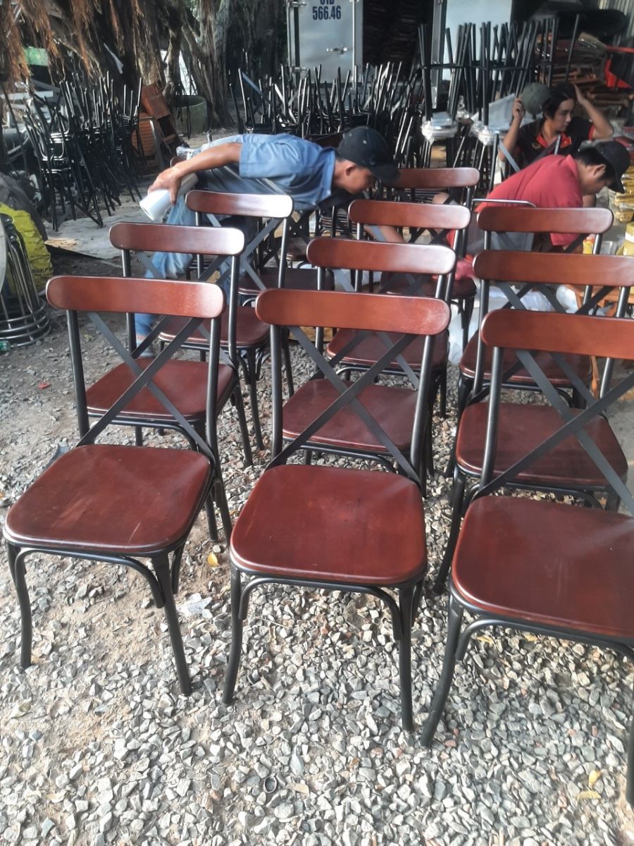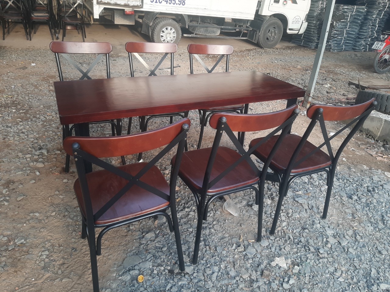 Bộ Bàn Ghế Quán Nhậu Nhà Hàng Khung Sắt Chữ X