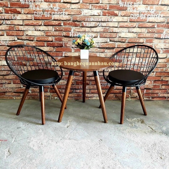 BỘ BÀN GHẾ SẮT NÓN CAFE CHÂN GỖ