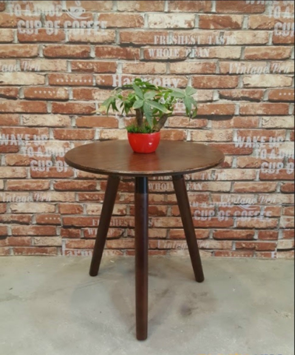 KT bàn: đường kính 600x600 cao 750 mm, gỗ cao su sơn nâu