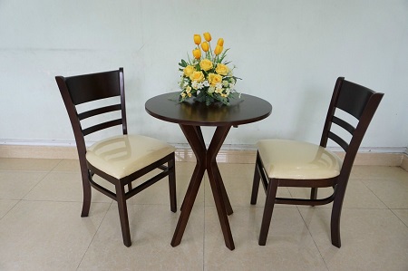 ghế cabin bàn chân chụm mặt gỗ vuông 60x60 bộ bàn 2 ghế