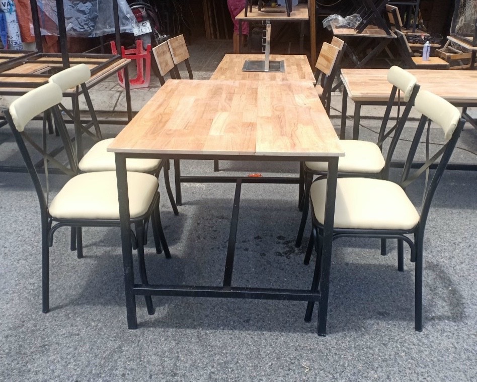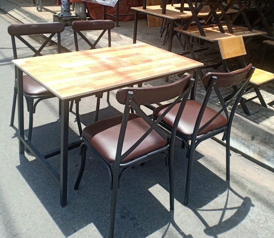 MÔ TẢ SẢN PHẨM BỘ BÀN ĂN , QUÁN NHẬU , NHÀ HÀNG ,CHỮ X SANG TRỌNG - Ghế Chữ X là sự kết hợp hoàn hảo của chất liệu sắt và gỗ. Thiết kế tinh tế và khéo léo ở những chi tiết nhỏ nhất như lưng tựa, thanh giằng. Để gia tăng nét thẩm mỹ cho sản phẩm, sử dụng những thanh sắt ống uốn tạo hình cách điệu.Những cạnh, lưng tựa và mặt ghế đều được bo tròn mềm mại. Ghế Chữ X được nhấn thẩm mỹ ở phần lưng tựa với 2 thanh sắt bản dẹt bắt chéo. Tạo nên chữ X sống động. Nét Rustic Style, Vintage thấm nhuần trong từng chi tiết. KÍCH THƯỚC: 40*42*45(+40) GỖ CAO SU TỰ NHIÊN MÀU SẮC TÙY CHỌN NỆM TÙY CHỌN - BÀN CHỮ NHẬT CHÂN CHỮ U + ván cao su +kích thước: 120*60*75 chân sắt Màu tùy chọn GIÁ XƯỞNG NÊN QUÝ KHÁCH HÀNG YÊN TÂM VỀ GIÁ