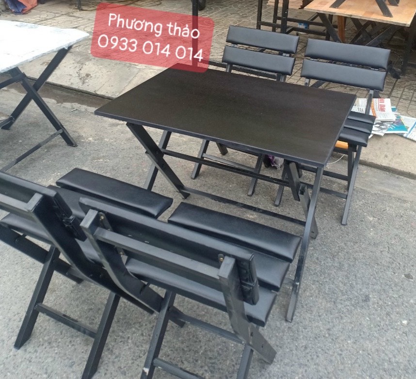 Bạn đang xem đúng xưởng chuyên sản xuất và cung cấp ra thị trường mẫu bàn ghế xếp quán nhậu cao cấp, màu sắc hiện đại, chất lượng cao, phù hợp với quán cafe, trà sữa, quán ăn, quán nhậu … Mã sản phẩm: PT165 Chất liệu: Sắt kết hợp gỗ Màu sắc: Màu đen Giá tốt nhất: 1,650,000 VND/bộ gồm: Bàn giá sỉ tốt nhất: 650,000 VND/bàn - Kích thước tương đối của mặt bàn và chiều cao: 60x90, cao 60 (cm) Ghế giá sỉ tốt nhất: 250,000 VND/ghế - Kích thước tương đối của mặt ngồi và chiều cao ghế: 38x33, cao 75 (cm) Tình trạng: Còn hàng liên hệ : 0933 014 014 : 0903 373 499