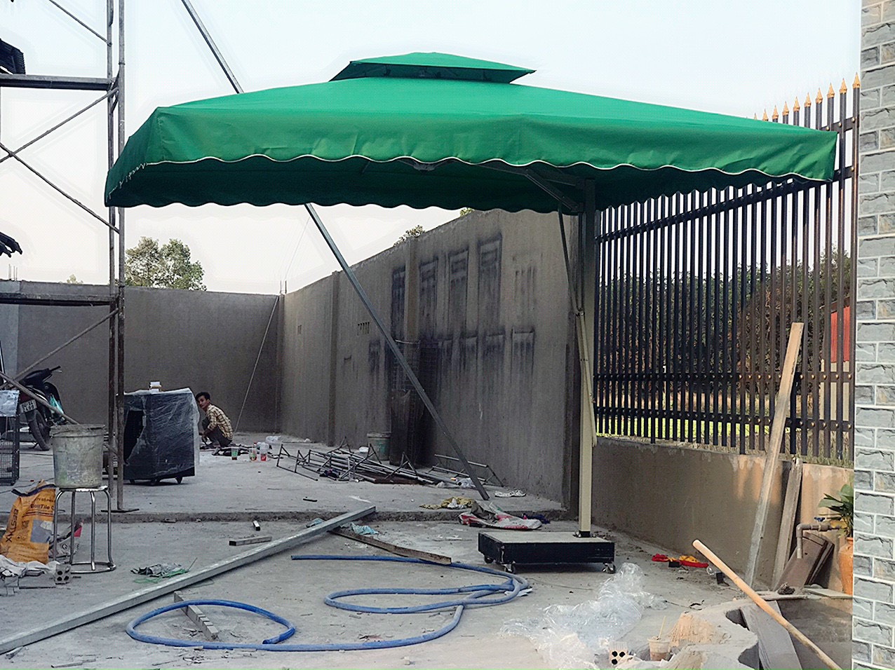 - Ô dù lệch tâm vuông có tay đòn bẩy điều chỉnh độ mở rộng của ô.