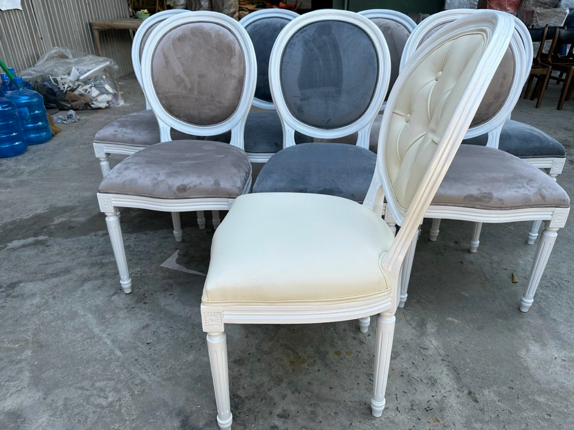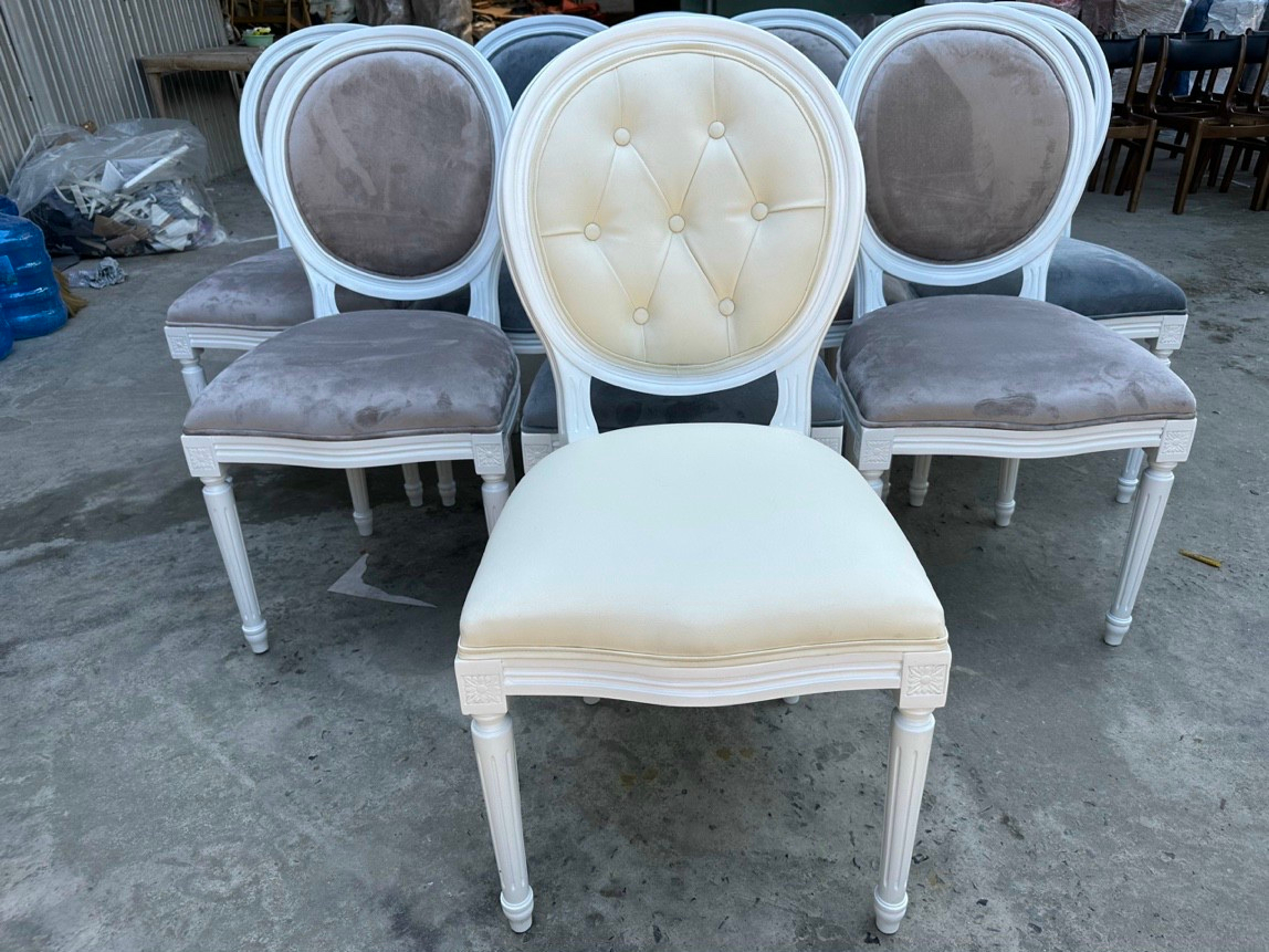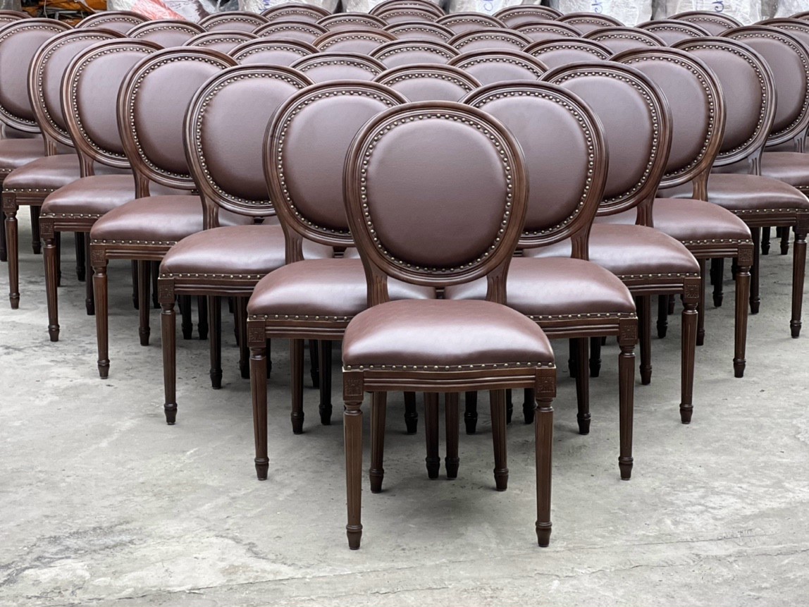Ghế Louis cafe , nhà hàng là mẫu ghế được làm từ gỗ caosu nguyên khối đã qua xử Lý cho chất lượng sản phẩm và độ thẩm mỹ cao, màu sắc vân gỗ đạt tiêu chuẩn. Phần mê ngồi và lưng tựa được bọc đệm tạo cảm giác êm ái khi ngồi, chất liệu bọc đệm tùy chọn như simili, nỉ, bố màu sắc linh hoạt dể lựa chọn.