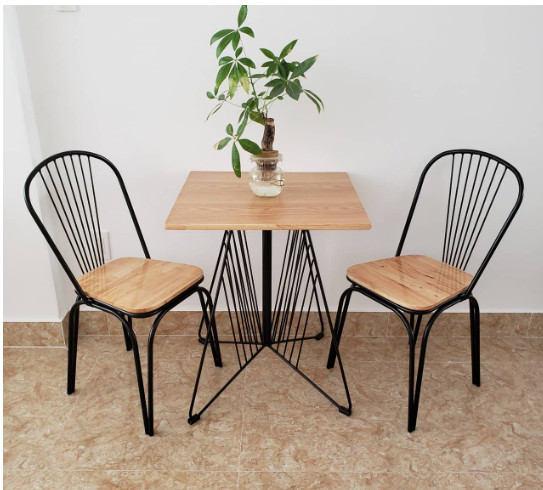 Bàn cafe chân sắt tạo kiểu cánh bướm mặt gỗ kết hợp với ghế cafe Thonet tạo nên bộ sản phẩm hoàn hảo với giá cả bình dân . Bộ sản phẩm gồm 1 bàn 2 ghế . Phù hợp sử dụng cho tất cả các nhu cầu như : nhà ở , văn phòng, quán cafe, trà sữa, quán bar…