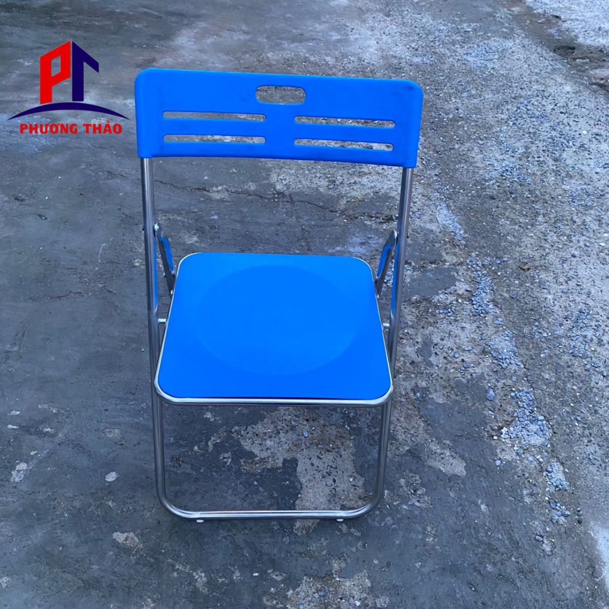 Ghế xếp nhựa tựa lưng 5 lỗ khung inox xanh dương