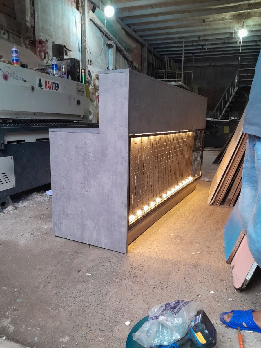 mẫu quầy gỗ xám xi măng đi đèn led