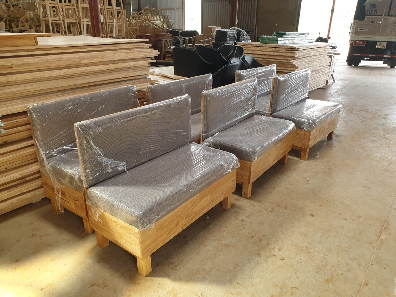 sofa cafe dựa tường khung gỗ bọc niệm cao cấp