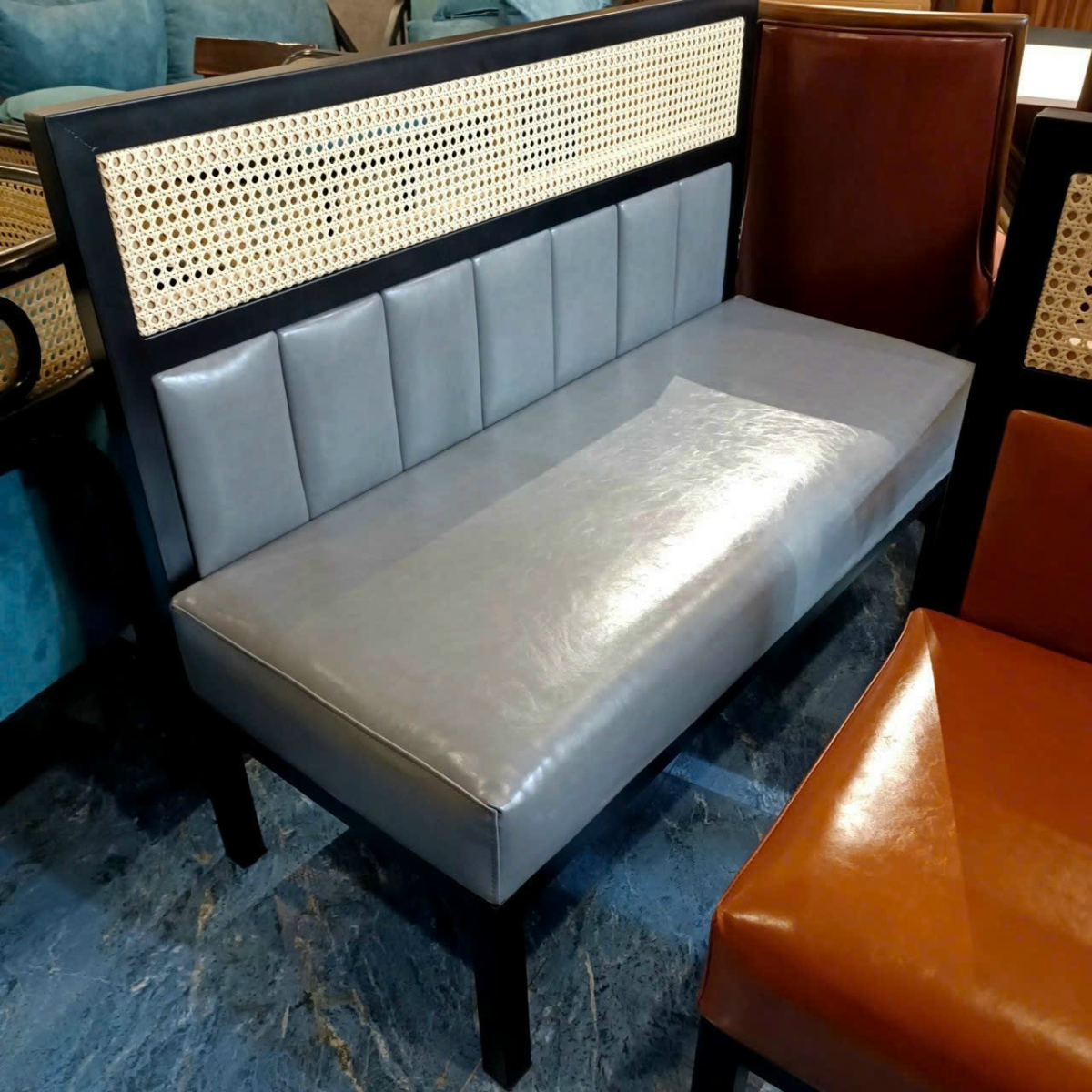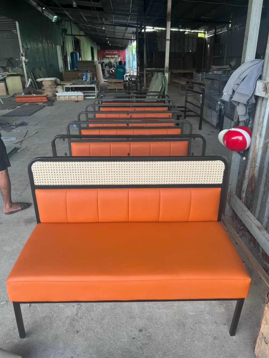 Ghế sofa cafe tựa lưng mây dựa tường SK01 mẫu mới của Nội Thất Cafe Phương Thảo