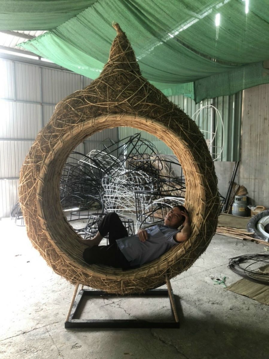 Xưởng sản xuất Mây Tre Lục Bình chuyên cung cấp và nhận làm các mẫu tổ chim, tổ kén, xich đu treo cây, xích đu tổ chim... làm điểm nhấn- decor chỗ chụp hình, check in cho các khu du lịch, khu nghỉ dưỡng, phim trường hay resort, nhà hàng, khách sạn.... Có thể đặt ngoài trời, bãi biển.